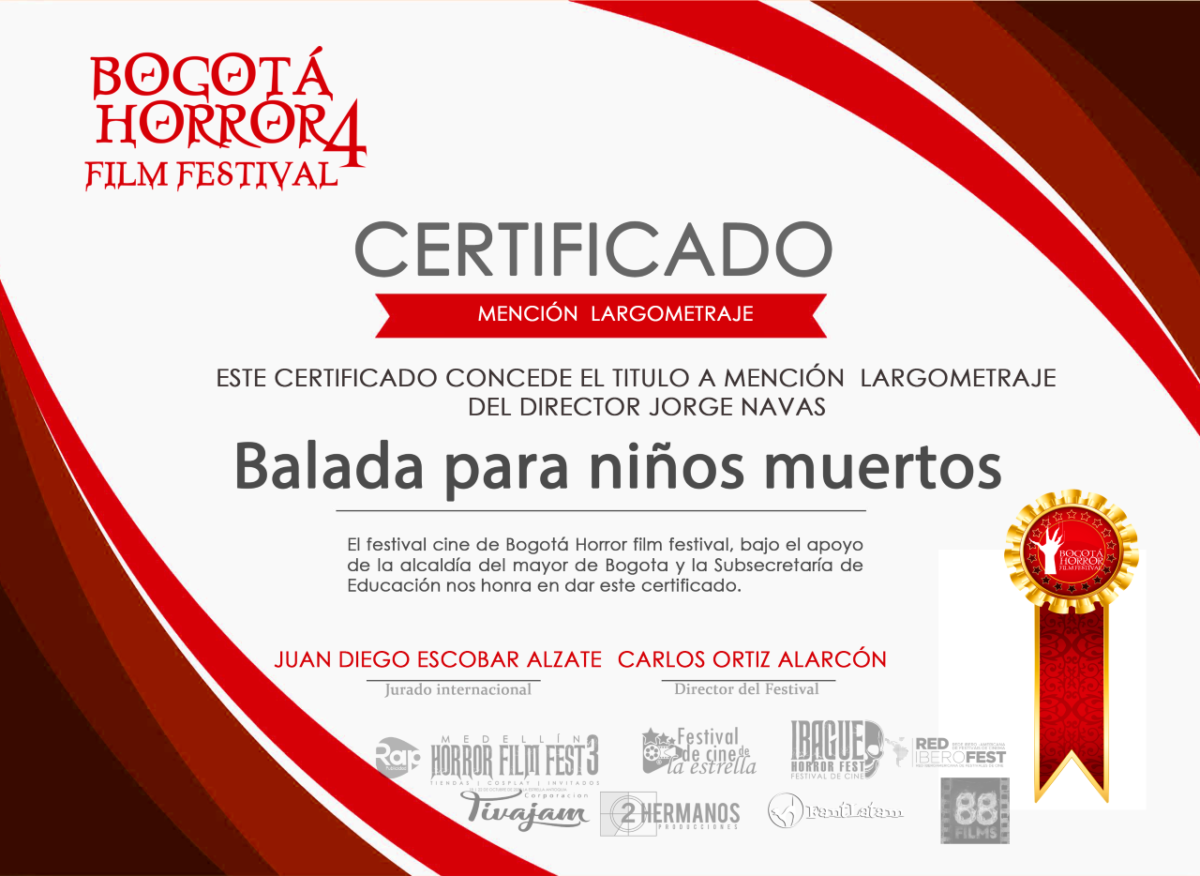 Y así mismo se entregan las menciones a: Balada para Niños Muertos dir Jorge Navas, el Laboratorio dir Xavier Marcus, Mete Miedo Néstor Sánchez Sotelo. The Brainlab directores, Sebastián Moya y Camila Guzmán, Ramiro directora, Laura Bibiana de la Hoz, Alguien dir Jean Cárdenas. Ivi Elv dir Luici Scarpa, Punto en Boca dir Daniel Lardónf, Mejor guión Hernán Moyano Mete Miedo, Mejor actriz, Constanza Cardillo por Bienvenidos al Infierno.
