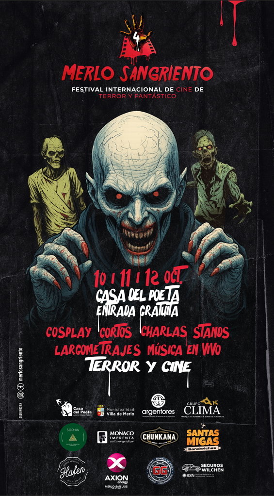 Los próximos 10, 11 y 12 de octubre de 2025, la ciudad de Villa de Merlo (San Luis) será escenario de tres jornadas imperdibles con la llegada de la cuarta edición del Festival Internacional de Cine de Terror y Fantástico “Merlo Sangriento”. La cita será en la emblemática Casa del Poeta, a partir de las 16 horas, con entrada libre y gratuita.